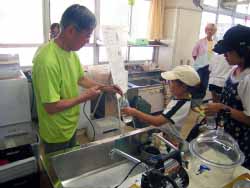 型枠に入れて 押し固めます 石灰水に息を吹き込んで二酸化炭素の確認